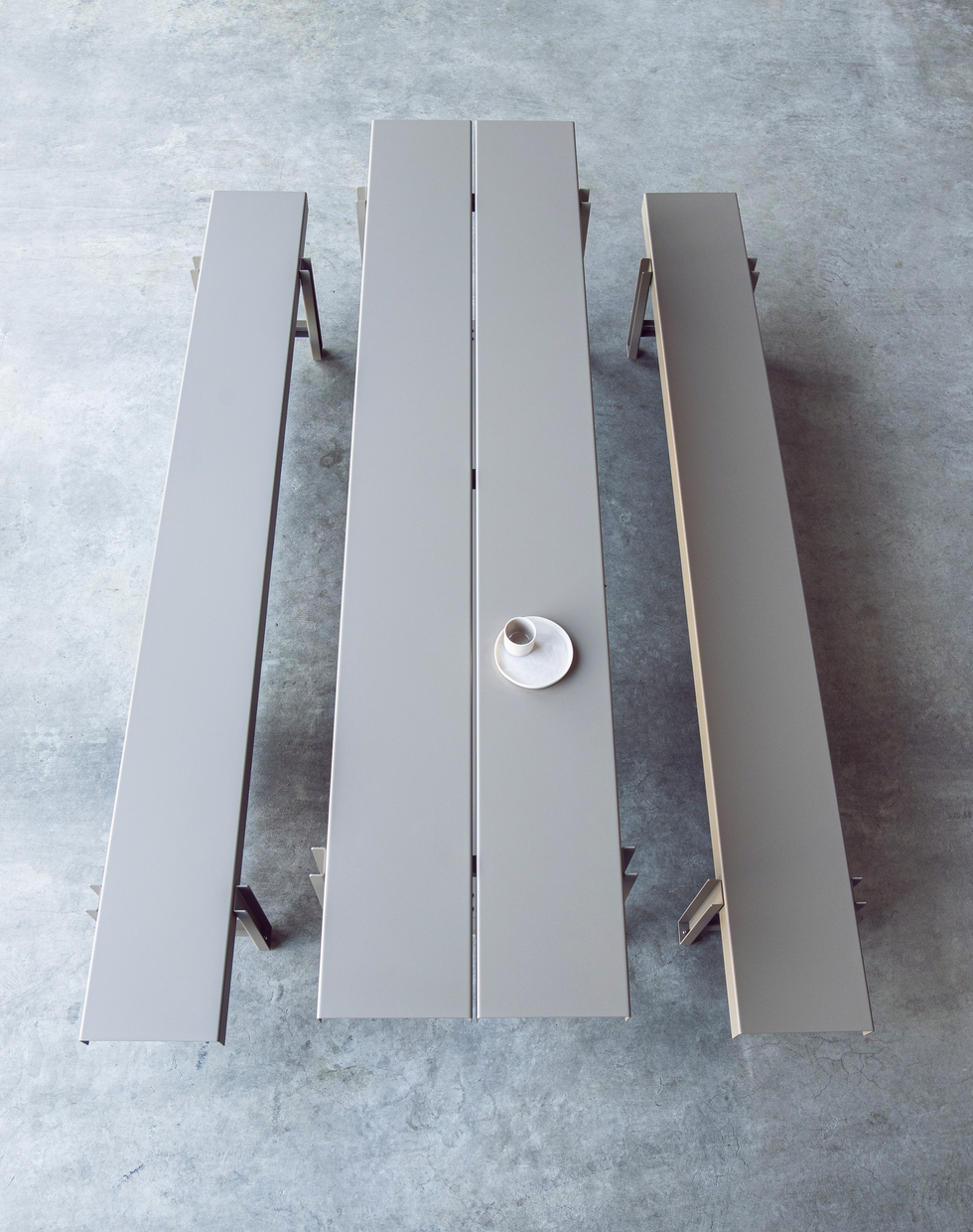We noemen ‘m MUSTER en hij doet meteen z’n naam eer aan. Want MUSTER is op z’n best in goed gezelschap. De tafel en banken bieden met een lengte van 300 x 70 cm de ideale verzamelplek voor een gezellig samenzijn met ‘the ones you love’. Gemaakt van aluminium, dus licht in gewicht en met een lange levensduur.