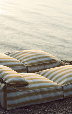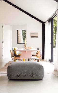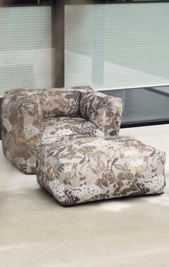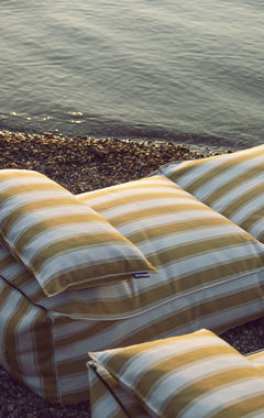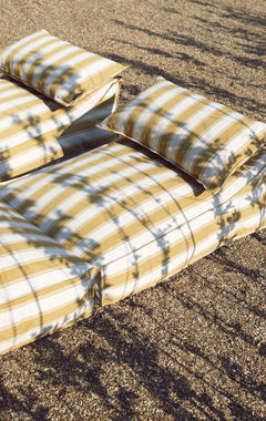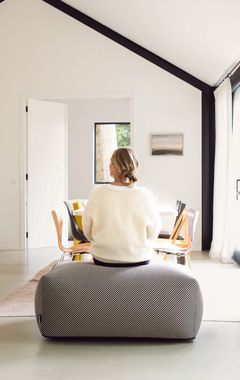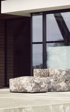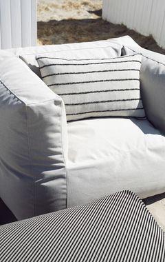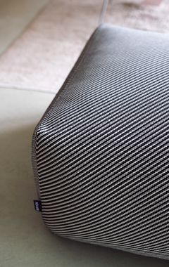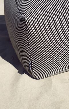 De gestreepte DIZZY stof is beschikbaar in twee kleurvarianten en heeft een robuuste uitstraling, maar voelt verrassend zacht aan. Binnen zorgt de hocker voor een subtiele eyecatcher. Buiten komt de stof extra tot leven: DIZZY vangt maar wat graag de zon op en wordt deze hocker het stralend middelpunt van elke outdoor set. Prachtig te combineren met onze Chairs en Couches uit de Off-White of New Brown serie van onze ECOllection.